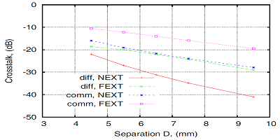 單端FEXT和NEXT隨著間距增大而變?nèi)酢?/span> |