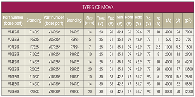1.金屬氧化物壓敏電阻(MOV)具有各種尺寸和尺寸,可用于廣泛的應(yīng)用。徑向鉛盤類型是最常見(jiàn)的版本