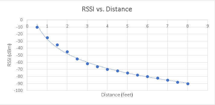 即使在近距離(1-2米)配對時,它也極易受到信號丟失的影響。如果此類情況影響信號質量的風險更高,請選擇功率更高的設備,并以較慢的速度運行以較大程度地減少數據包丟失。或者,如果電子設備位于外殼內部,請確保金屬化材料最小化,并且遠離BLE模塊。藍牙信號強度和距離之間的關系不是線性關系。實際上,它是非常非線性的,并且根據周圍環境有些不可預測,但是確實遵循一般模式(如下所示)。