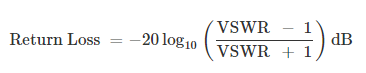 盡管存在許多表格可以在VSWR和回波損耗之間進行轉換,但也可以使用以下公式在它們之間進行轉換。