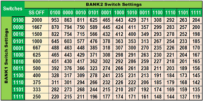 選擇BANK1和BANK2的相鄰值;如果電阻值之間的距離較寬,則電阻的額定功率會降低。