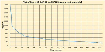 5. BANK1(R = 1000Ω)和BANK2(R = 910Ω)電阻器(帶SS)的Req變化,步長按順序排列以獲得單調遞減的電阻值