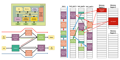SoC塊級組件包括兩個處理器,外圍設備和內存。框圖下方顯示了SoC的簡單圖形。該圖包括SoC驗證過程中可能行使的可能的高級路徑。例如,在圖形的頂部路徑中表示的一種可能的情況是,從SD卡讀取JPEG圖像,并將其通過內存中分配的區域傳遞給照片處理器。圖像被處理成可以顯示的形式,并加載到內存中的第二個塊中。從那里,它傳遞到顯示控制器。當然,這些高級塊中的每一個本質上都是分層的,許多動作和決定作為流程的一部分被執行。