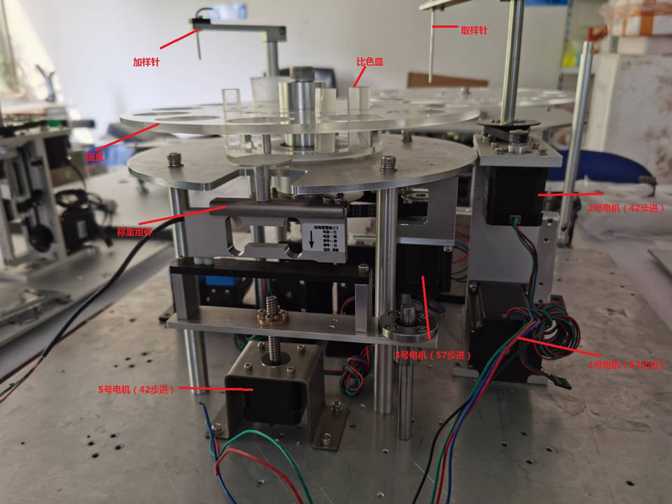 七、提取完最后一份樣液后,圓盤復(fù)位至初始位置(3號(hào)電機(jī)動(dòng)作),等待手工取出樣品杯。